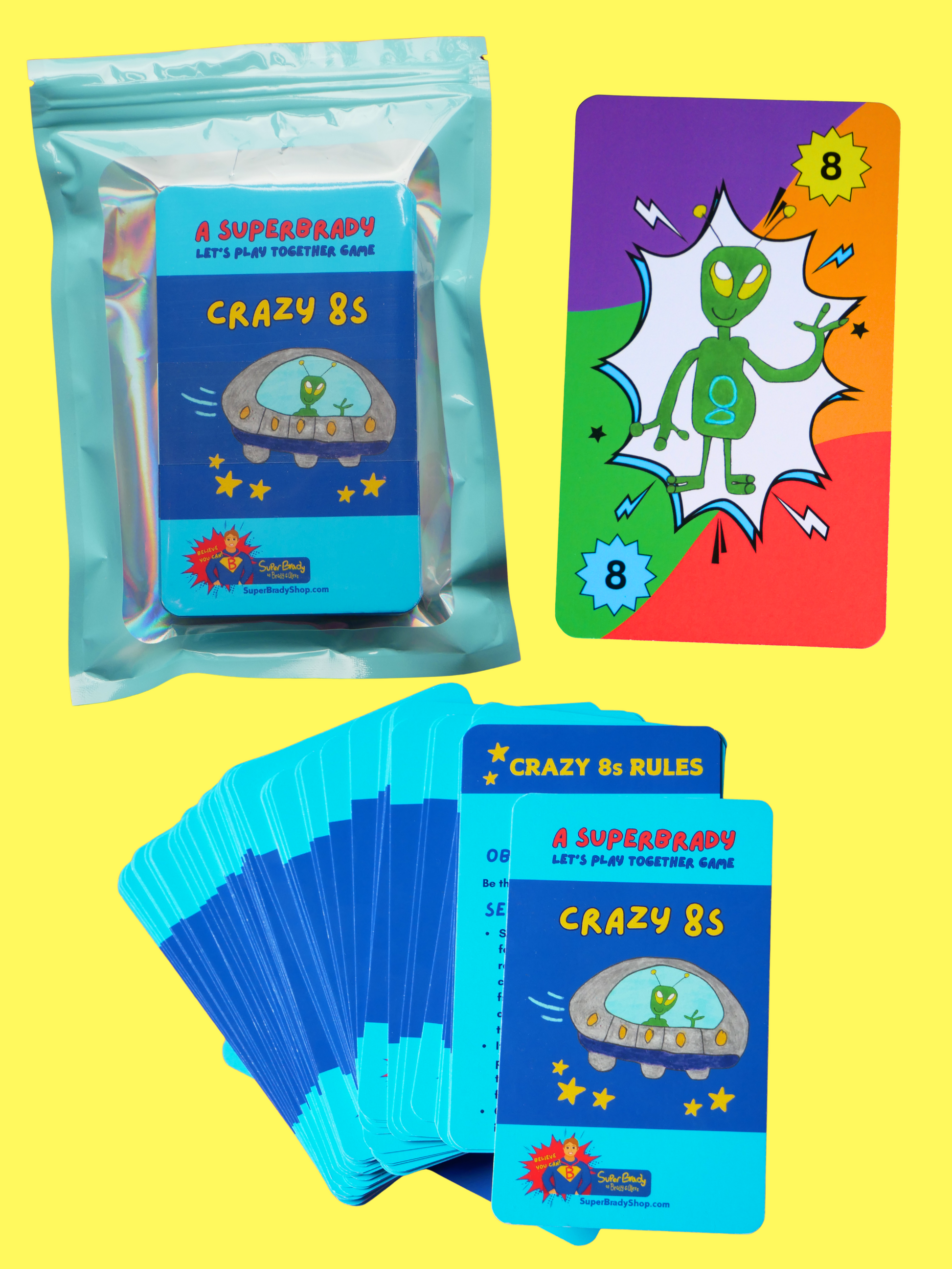 CRAZY 8s! A SuperBrady "Let's Play Together!" Card Game that is fun for the whole family! Based on Brady's "Out of This World" Adventure-themed art.