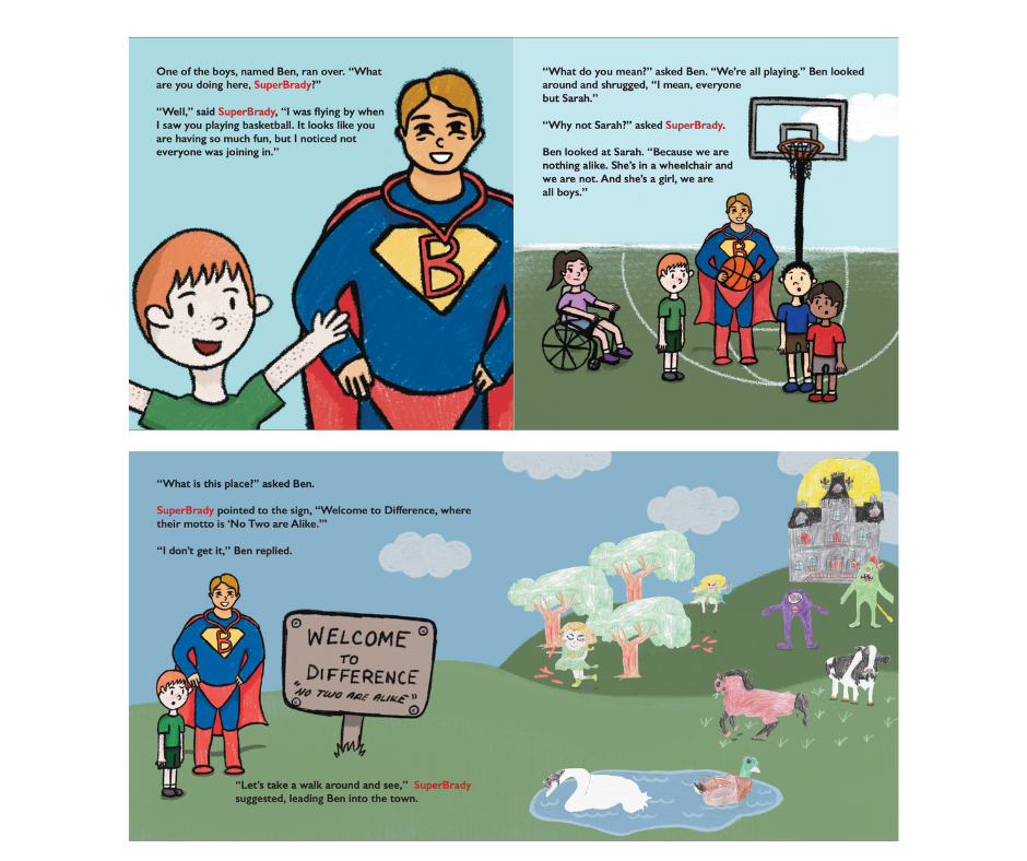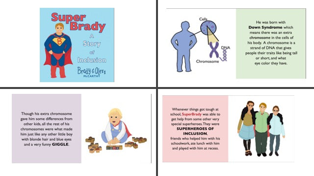 SuperBrady: A Story of Inclusion follows the life of a little boy born with Down Syndrome as he uses his superpowers to make friends and to never give up! SuperBrady also gives tips on how anyone can become a Superhero of Inclusion by being kind and accepting of others.