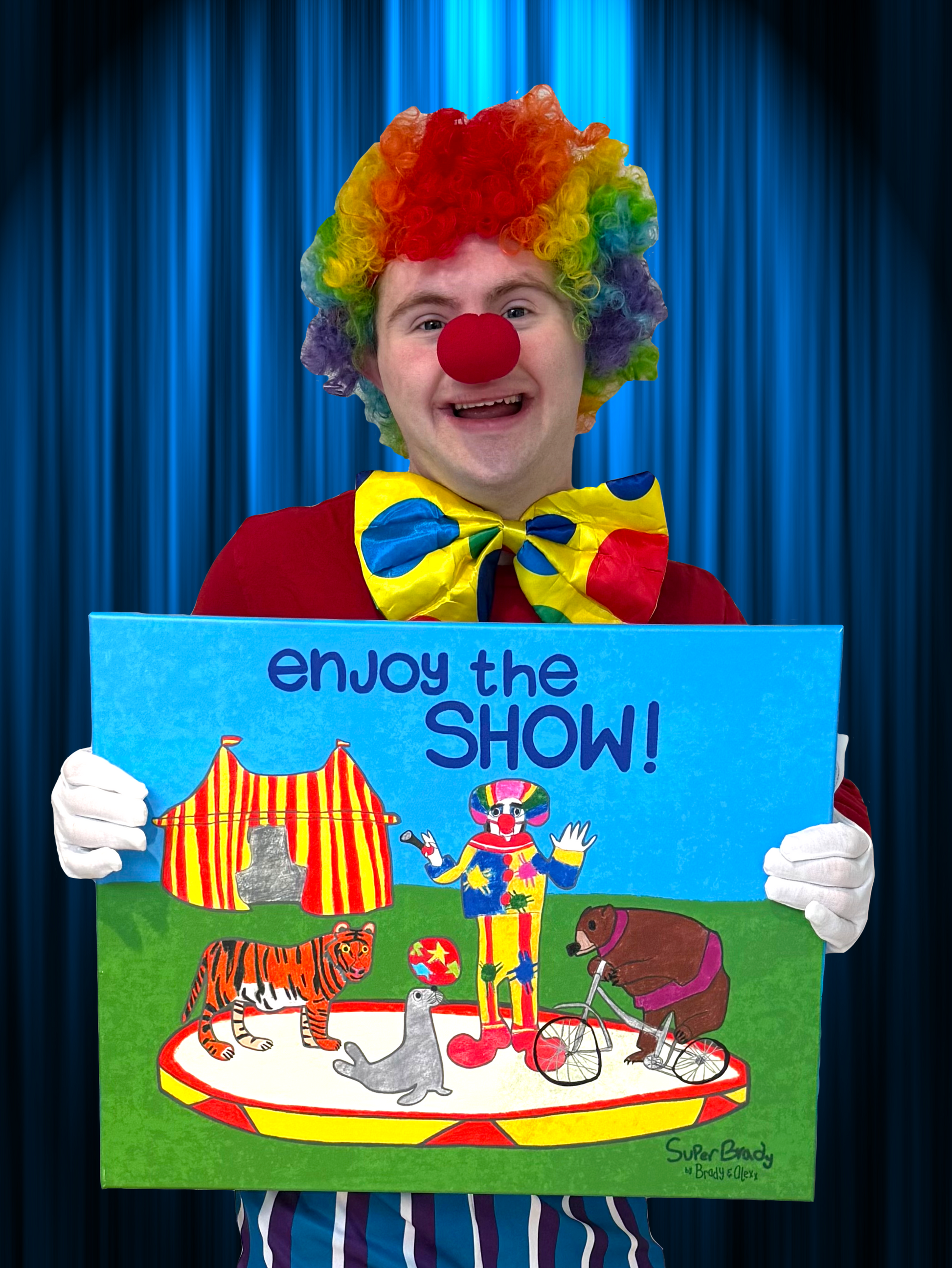 Welcome to the Circus and "Enjoy the Show!" Brady's hand-drawn circus pictures are combined digitally by his sister, Alexx, to create this enjoyable circus scene. Perfect for displaying on your wall to bring fun and vibrancy to any room.