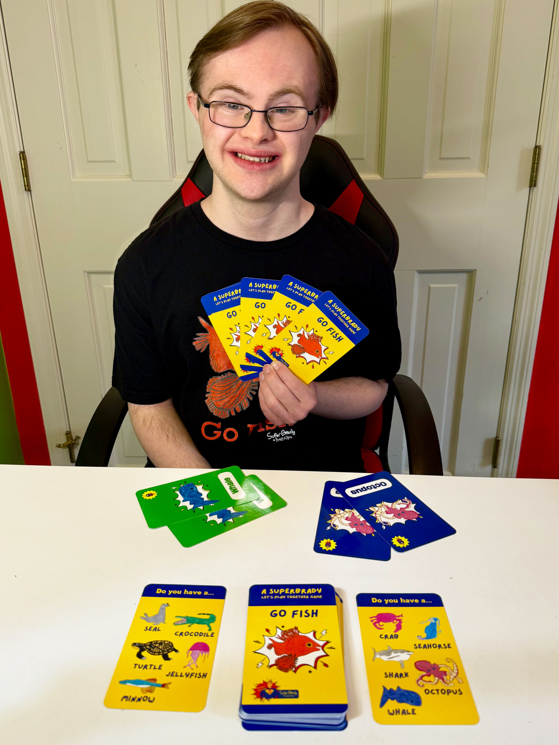 As an artist, Brady drew all the sea creatures in his adaptation of the popular "Go Fish!" game that he grew up playing. His desire for everyone to feel included is the inspiration for this game and he hopes sharing his talents inspires others to "Believe You Can!"