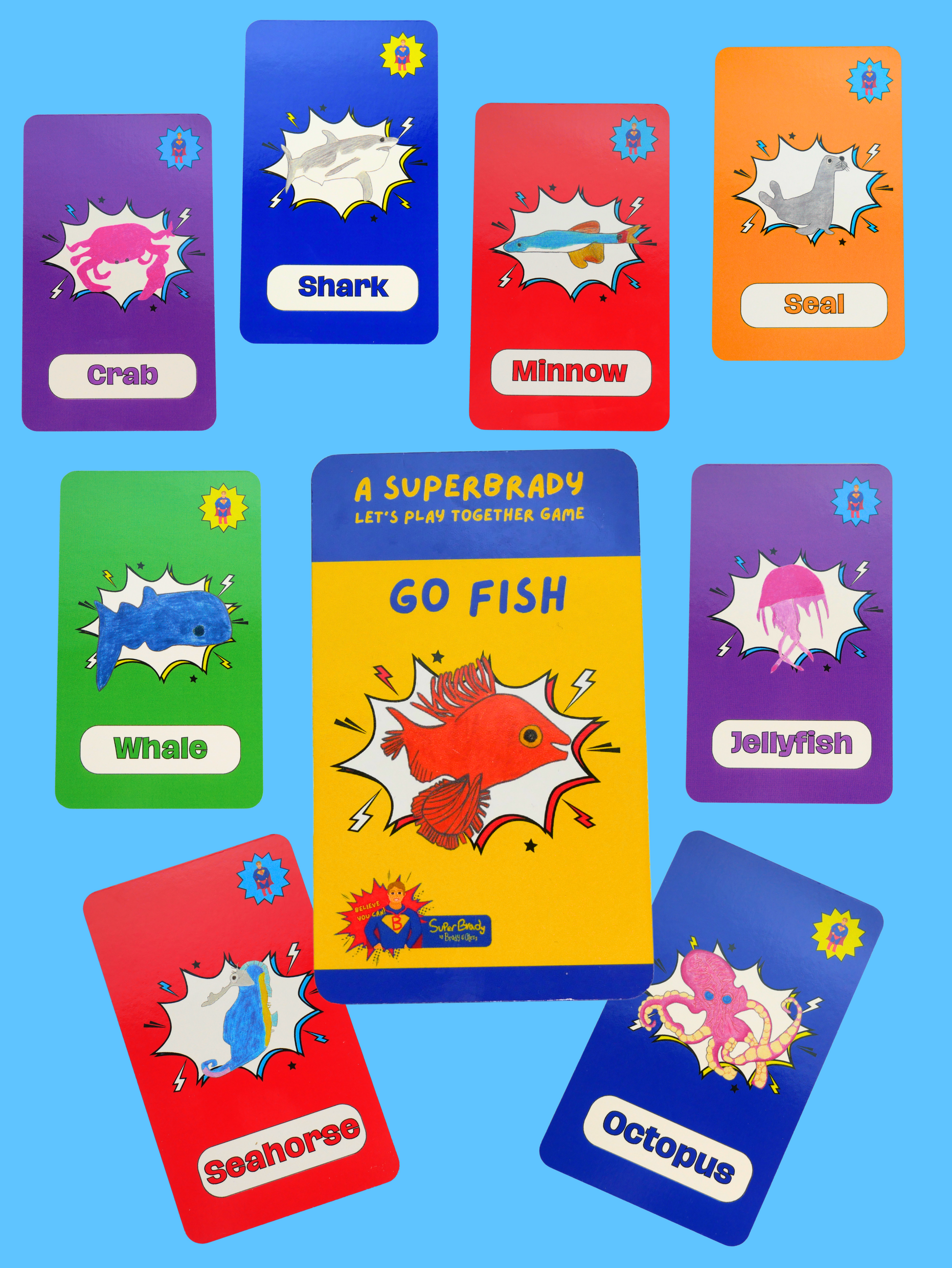 GO FISH! A SuperBrady "Let's Play Together!" Card Game that is fun for the whole family! Based on Brady's "Under the Sea" Adventure-themed art.