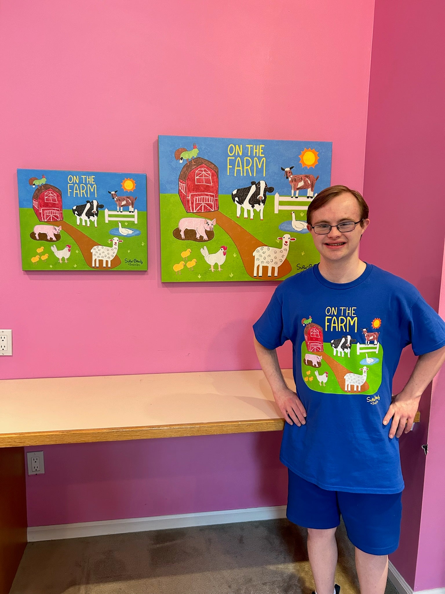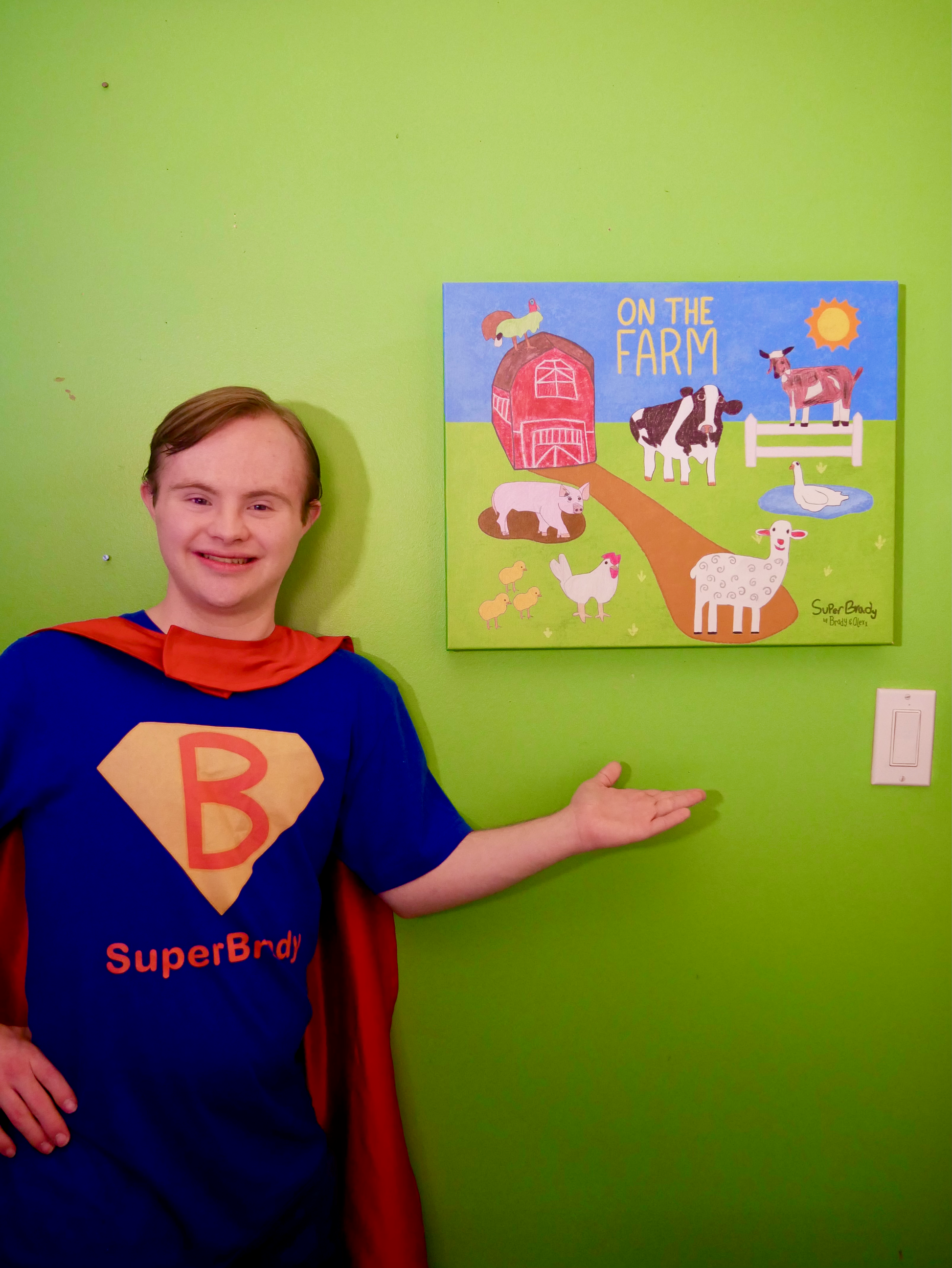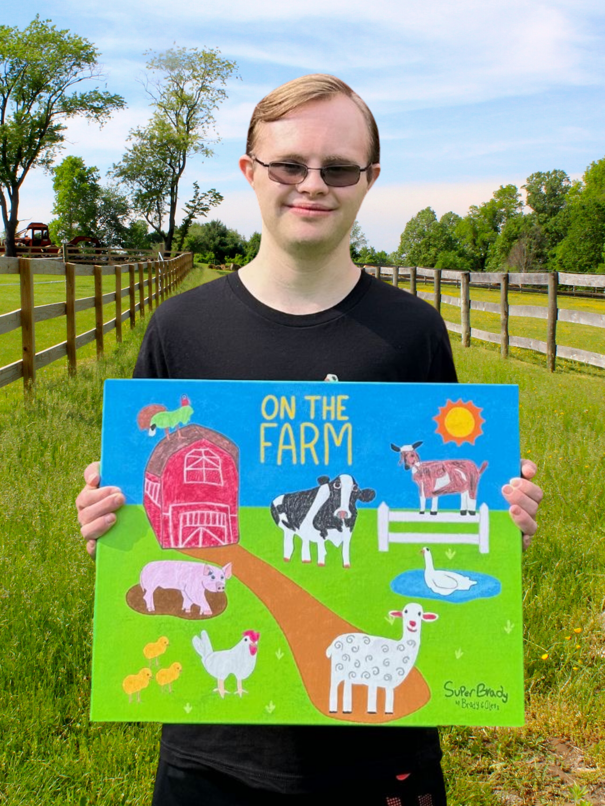 Enjoy a day on the Farm! Brady's hand-drawn farm animals and barn are combined together digitally by his sister, Alexx, to create this enjoyable farm scene. Perfect for displaying on your wall to bring fun and vibrancy to any room.