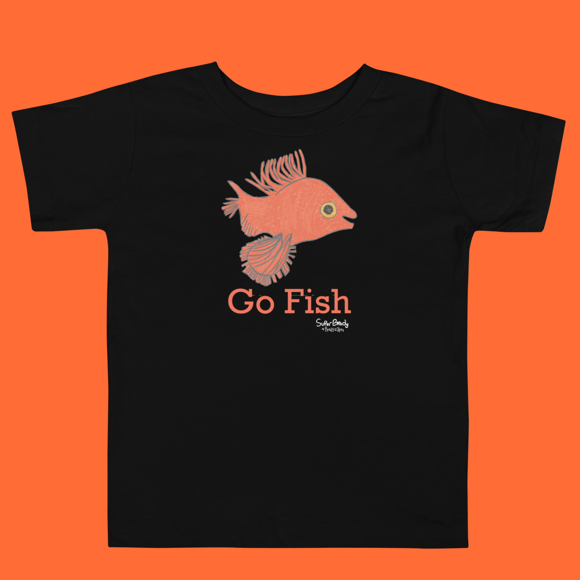 Part of SuperBrady's InspirART Playground collection, this fun Go Fish T-shirt is bound to become a favorite in any wardrobe. It's light, soft, and comes with a unique design that stands out from the crowd wherever you go! Available in Toddler and Youth sizes.